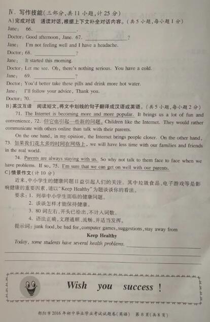 本文关键字: 湖南邵阳中考英语试题及答案 2016中考