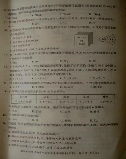 2016湖南邵阳中考化学试题及答案
