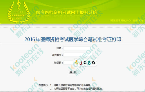 国家医学考试网2016年医师资格考试笔试准考证打印入口: