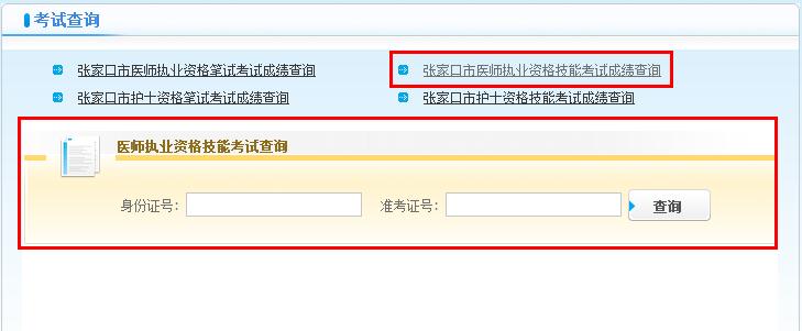 河北张家口市2016年医师技能考试成绩查询入口:http://www.wsj.zjk.gov.cn/index.do?templet=zxcx_kscx