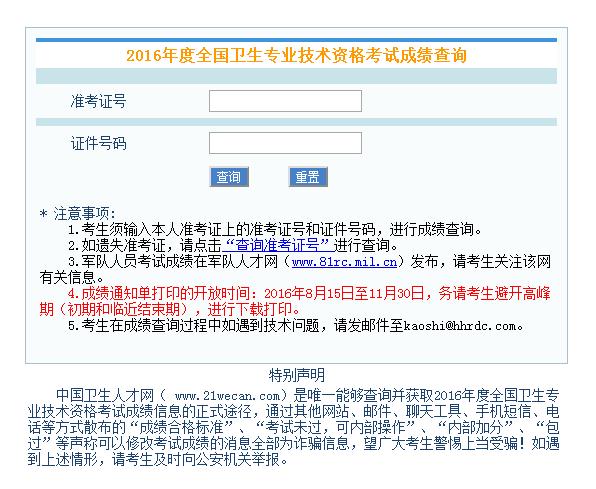 中国卫生人才网成绩查询入口:http://www.21wecan.com/(7月21日下午15点正式开通)