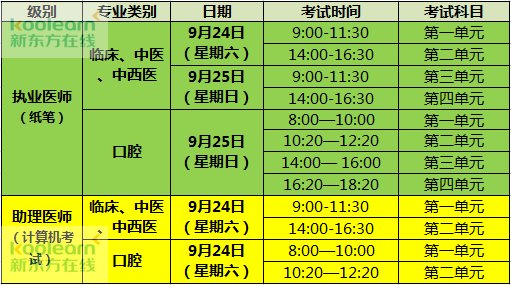 临床、中医、中西医和口腔、公卫执业助理医师笔试考试时间全国统一考试时间为9月24日。