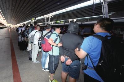 8名嫌疑人被押解回京。京华时报记者 赵思衡 摄