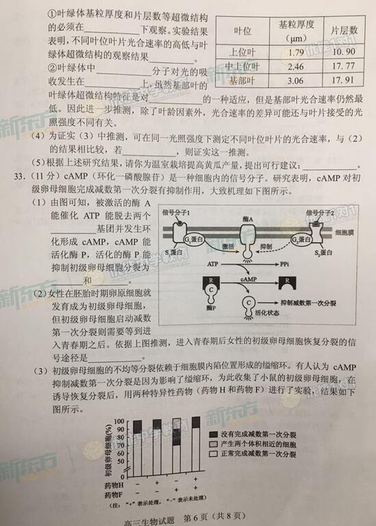 2016-2017学年​北京海淀高三期中生物试题及答案