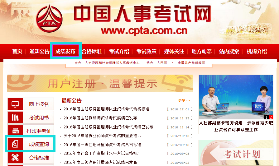 2016年山东执业药师成绩查询入口_中国人事考试网