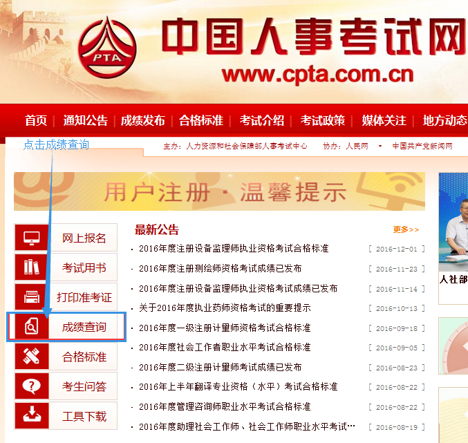 1、请登录进入中国人事考试网,注意官网标志或网址(http://www.cpta.com.cn/)