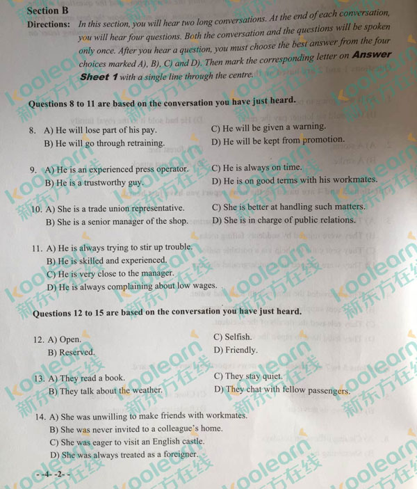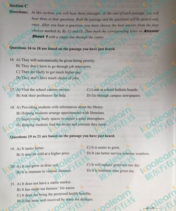 新东方在线英语四级频道考后发布2016年12月英语四级真题答案,同时新东方名师将对真题 答案进行权威解析,请考生关注。更多2016年12月英语四级听力真题及答案、英语四级作文真题及 答案、英语四级阅读真题及答案、英语四级翻译真题及答案,请查看【2016年12月英语四级真题答案解析】专题!