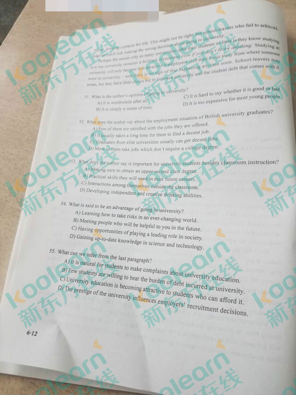 2023年12月英语六级考试已经在12月16日中午结束了,相信同学们想对下六级答案,估算下自己的六级成绩。新东方六级老师已经第一时间整理