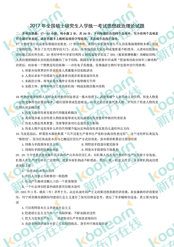 新东方在线考研频道考后发布2017考研真题答案,并将对真题答案进行深度解析,帮助大家估分、为后续复试调剂做好准备。更多2017年考研英语真题及答案、考研数学真题及答案、考研政治真题及答案、管理类联考、经济类联考真题及答案、考研专业课真题及答案,请关注【2017考研真题及答案解析】专题!