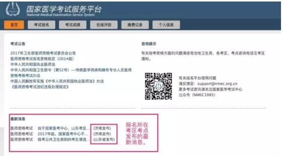 Q:如何找到当地考区、考点的通知信息?A:考生登录考试服务平台(点击登录国家医学考试服务平台),您报名所在地考区、考点发布的最新公告,在服务平台首页的左下角。