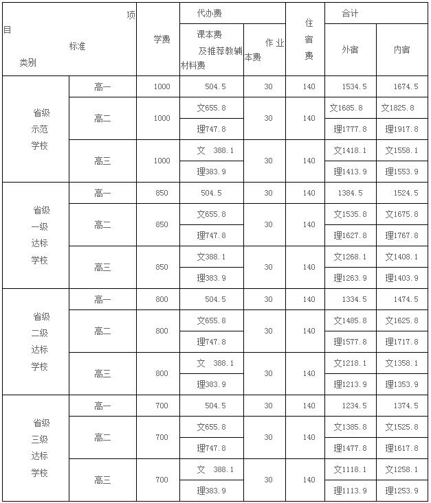 (四)住宿生住宿费:高中住宿生每生每学期住宿费140元。高中公寓生收费标准按永价综[2015]34号文件规定执行,不再收取住宿费。
