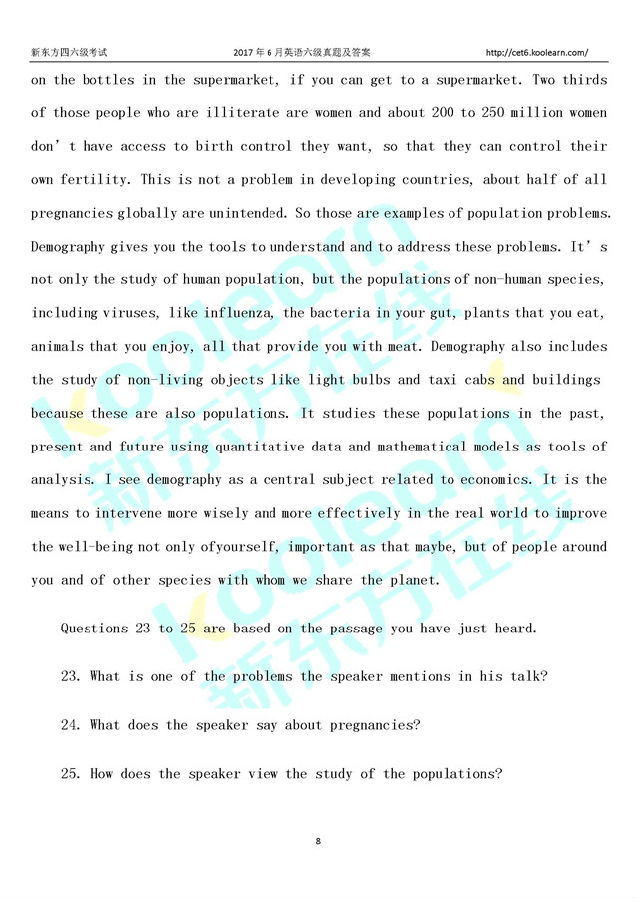2017年6月英语六级真题试卷