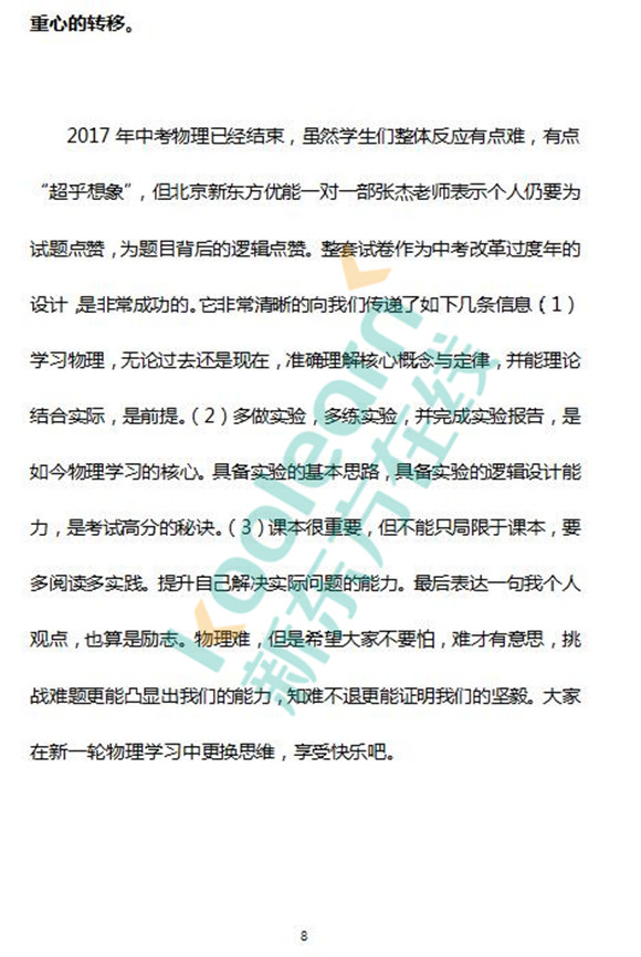 新东方在线名师张杰点评2017年北京中考物理试题