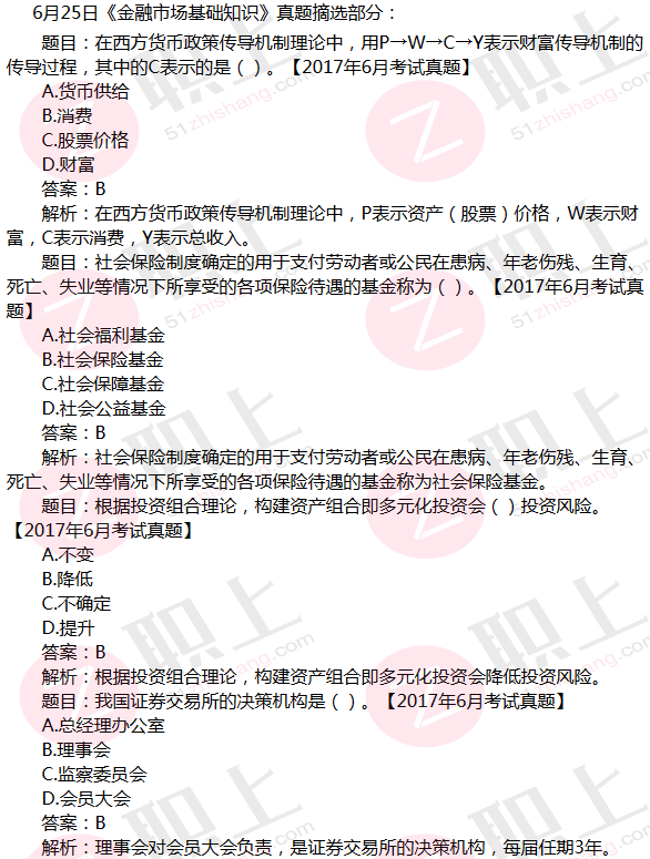 2017年7月20日证券从业资格考试真题答案解析汇总中:包括《证券市场基本法律法规》和《金融市场基础知识》真题及答案解析,点击查看2017年7月20日证券从业资格考试预约式考试真题答案。