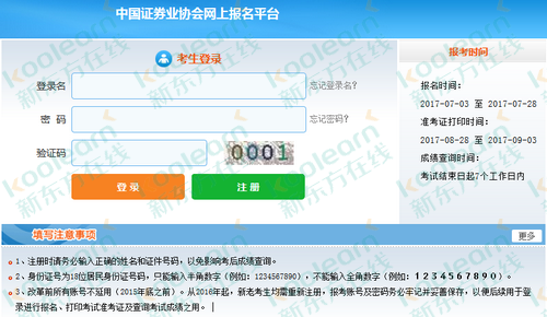 2017年9月2至3日证券业从业人员资格考试报名入口:http://182.92.48.186/sac/login/login_qt.htm?jsessionid=44a7f066c9a8efdb&kslb=1