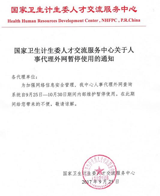 中国卫生人才网发布通知:9月25日-10月30日将进行系统维护、升级检测,各年度卫生专业技术资格考试和护士执业资格考试成绩查询及成绩单打印将暂停服务,10月30日起恢复服务。