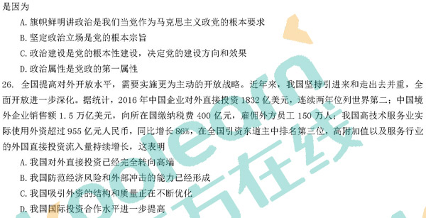 考前数百个日夜的努力,只在一朝见分晓,2018考研政治考试结束了,今年的考题难度变化大不大?生题新题多不多。我们来看新东方在线考研频道发布的2018年考研政治毛中特真题及答案,对对答案估估分。点击领取【2018考研真题解析直播课】。更多2018年考研英语真题答案及解析、考研数学真题答案及解析、考研政治真题答案及解析、管理类联考真题答案及解析、考研专业课真题答案及解析,请关注【2018考研真题答案及解析】专题!