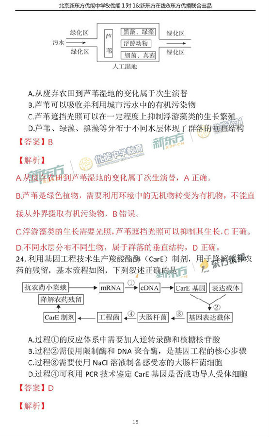 2018年1月北京东城区高三期末生物真题及答案解析(新东方版)
