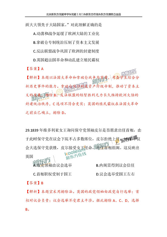 2018年1月北京海淀区高三期末历史真题及答案解析(新东方版)