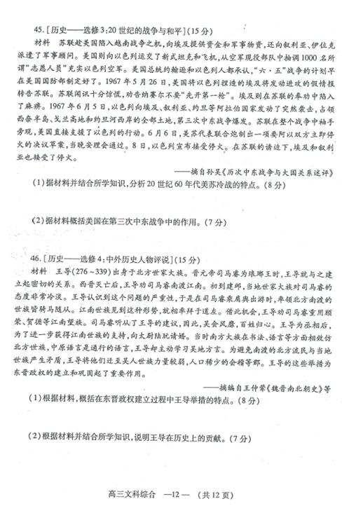 2018福州高三质检文综试题及答案