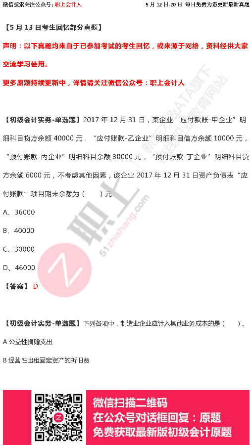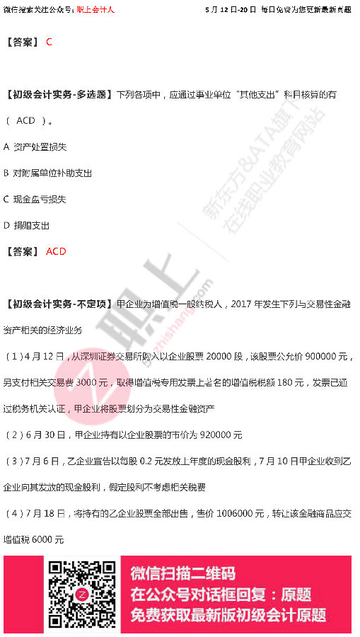 2018初级会计师真题答案(实时更新中):2018年初级会计职称考试正在进行中,已考完的考生可以进入2018年初级会计师真题答案分享讨论群,一起分享2018年初级会计职称考试真题及答案,预估自己的考试分数。