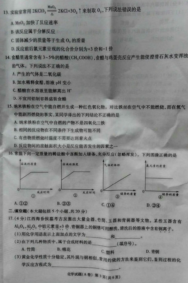 2018重庆中考化学试题及答案汇总:2018年重庆中考已结束,新东方在线中考网小编将2018重庆中考化学试题及答案整理如下,供考生参考。