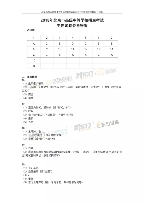 2018北京中考将于6月24日开考,新东方在线会在考后进行试卷及答案解析(点击查看>>2018北京中考试题及答案汇总),考生们可提前预约。