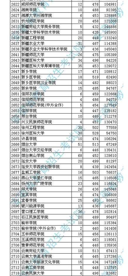 2018安徽高考本科二批投档分数线及名次(理工类)