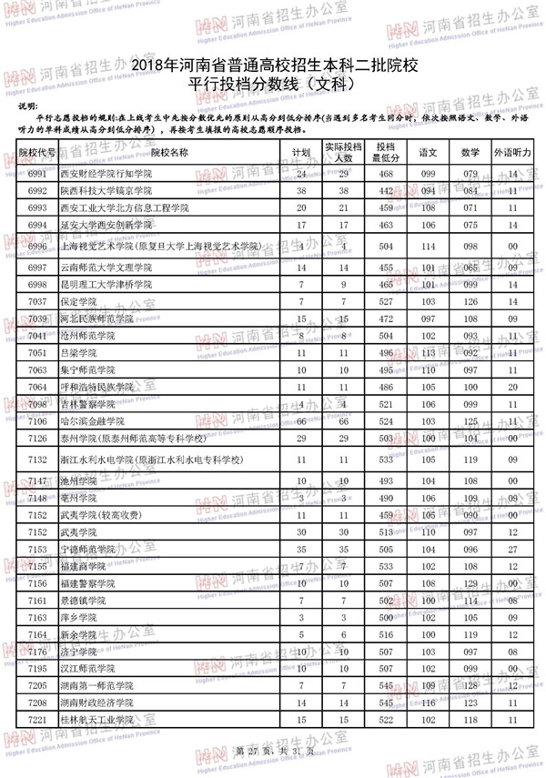 2018河南高考本科二批投档分数线(文科)