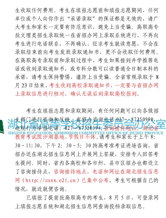 2018湖北高考高职高专文理类志愿将于8月8日-11日填报