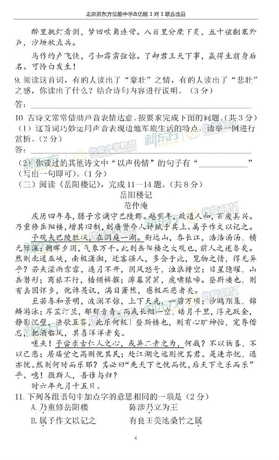 本文关键字: 海淀初三期中 语文试题