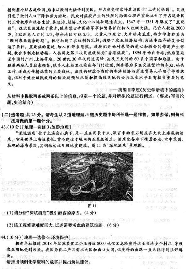 2019东北三省三校一模文综试题及参考答案