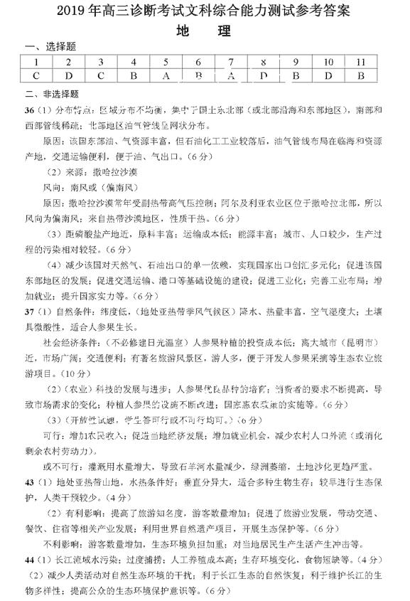 2019兰州一诊文综试题及参考答案