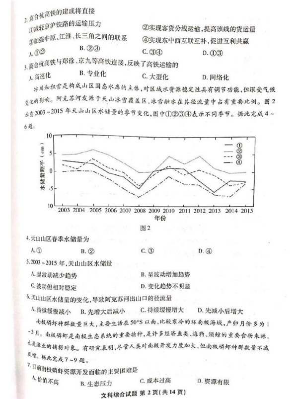 2019安徽江南十校综合素质检测文综试题及参考答案