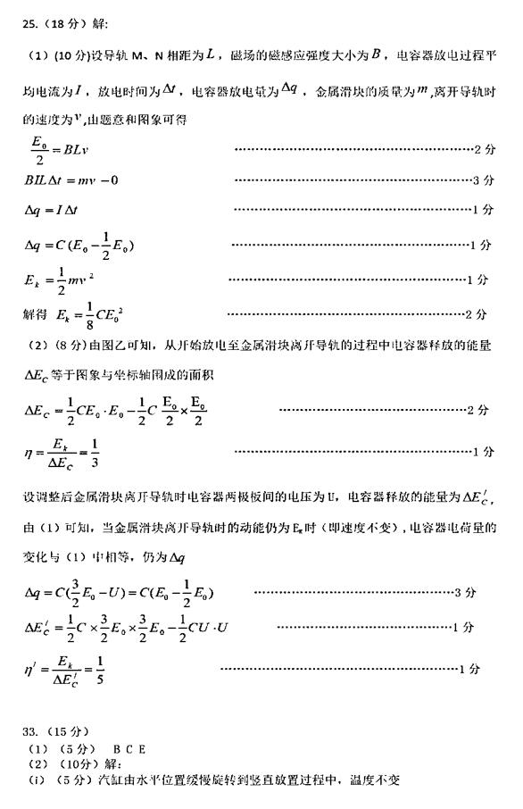 2019乌鲁木齐二诊理综试题及参考答案