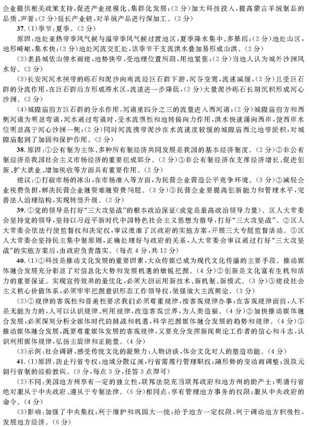 2019柳州3月高三毕业班模考文综试题及参考答案