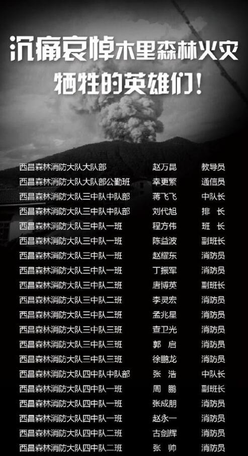 经省政府请示,国务院批准,4日,凉山州西昌市、木里县将降半旗,向在扑救木里森林火灾中牺牲的30位英雄志哀!