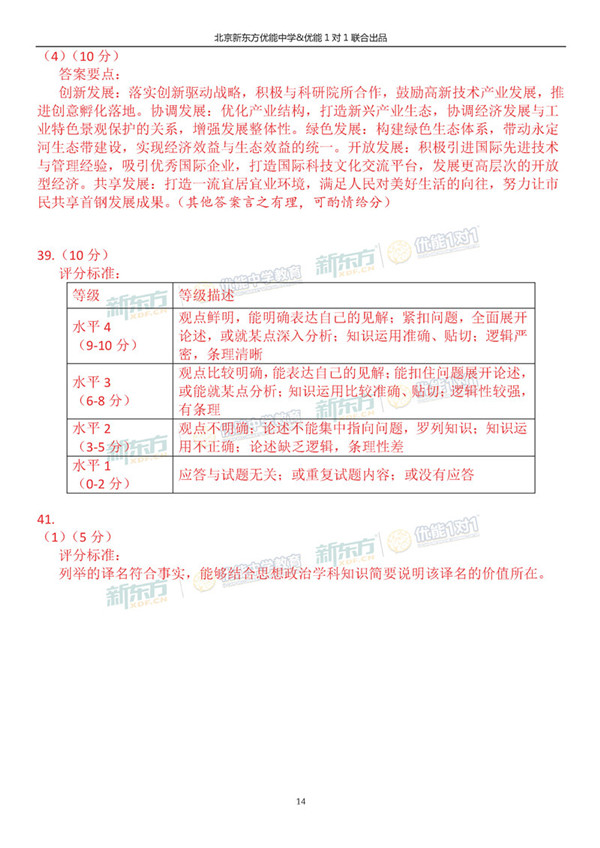 2019北京海淀高三一模文综试卷答案逐题解析(新东方版)