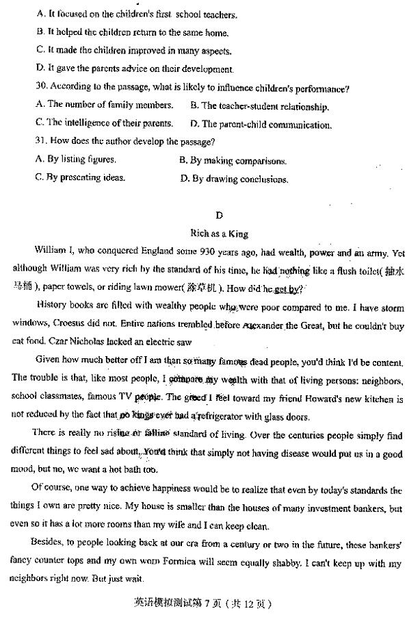 2019东北三省四市高三一模英语试题及参考答案