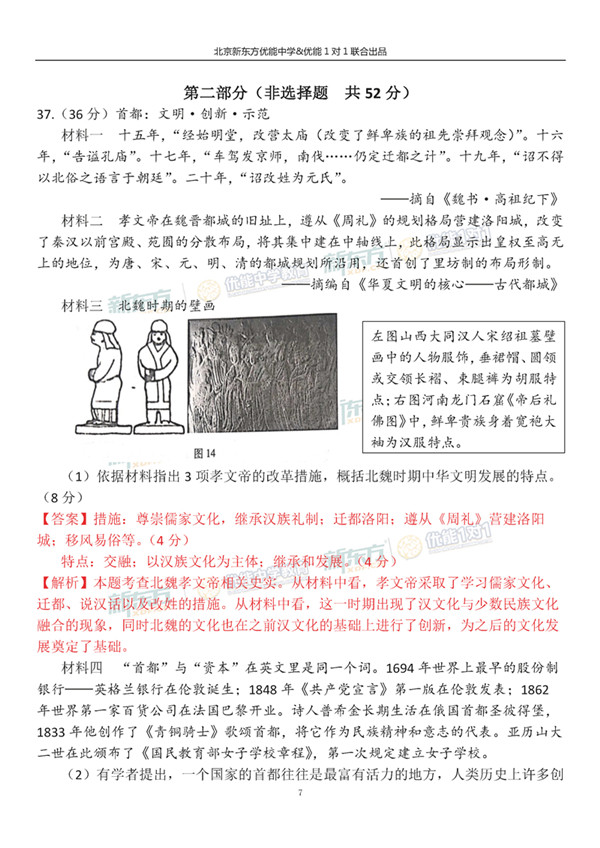2019北京西城高三一模文综历史试题逐题解析(新东方版)