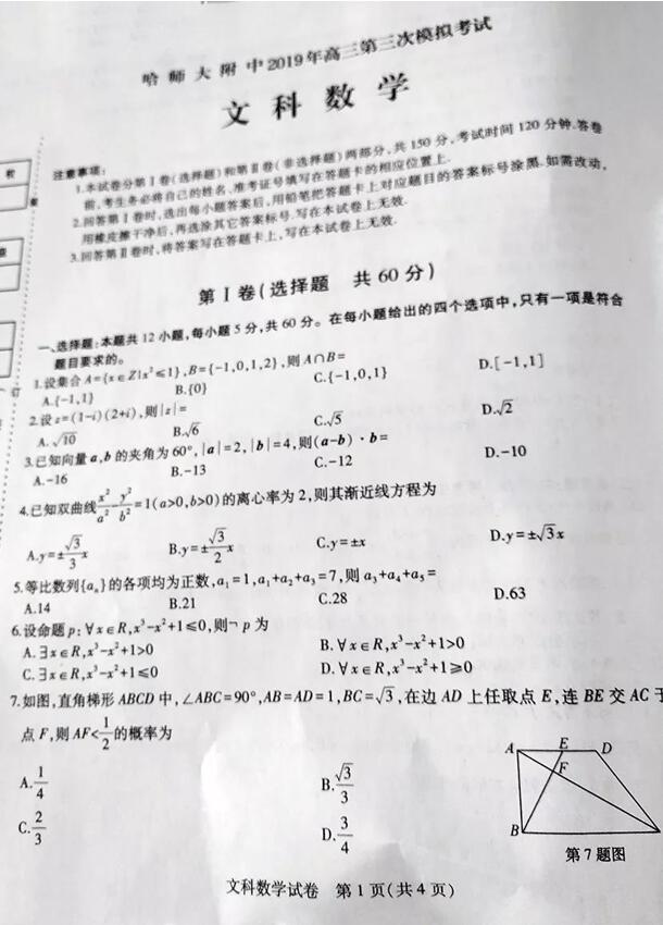 2019东北三省三校三模于5月7-8日开考,为方便考生们复习,新东方在线高考网小编整理了2019东北三省三校三模文科数学试题及答案,供考生参考。点击下载>>2019东北三省三校三模试题及答案