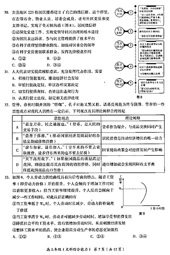 2019北京海淀区高三二模文综试题及参考答案