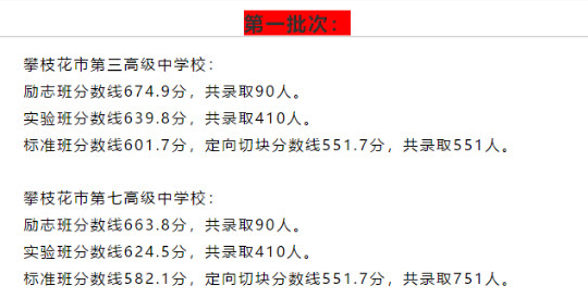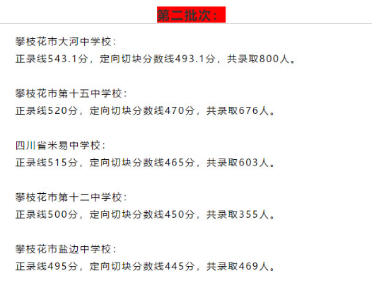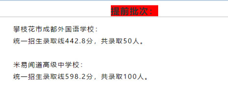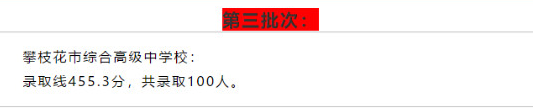 2019年中考四川攀枝花市普通高中录取分数线出炉了,具体内容如下所示: