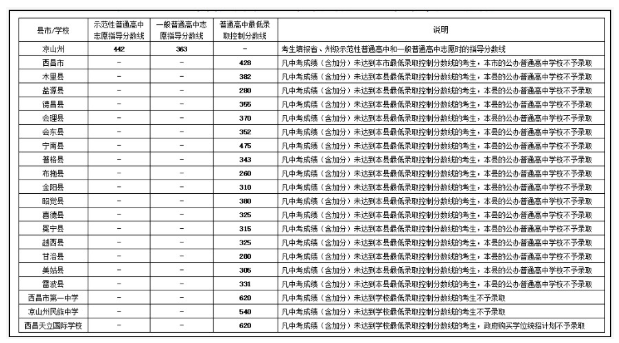 凉山州民族中学、西昌市第一中学根据本校招生实际,划定了本校高中的最低录取控制分数线。