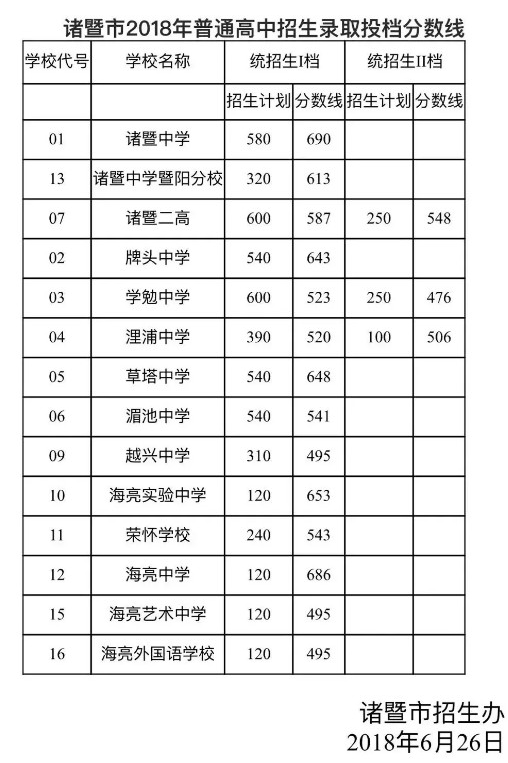 今年的录取投档分数线与去年相比普遍有所降低,诸暨中学投档录取分数线为681分,比去年低了9分。