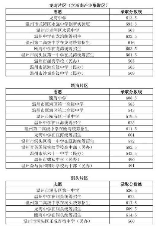 2019年中考温州市教育局直属普通高中录取分数线公布了,具体内容如下所示: