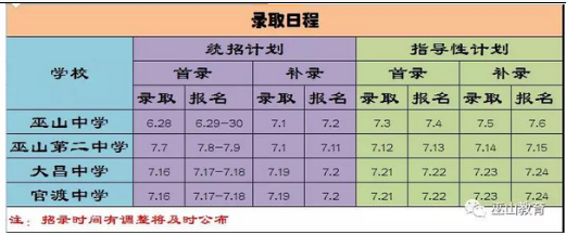 3.巫山中学择校计划首录分数线:2019年7月3日公布;