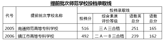 南通师范高等专科学校和镇江市高等专科学校在加试(面试)合格并填报该校志愿的考生中,按照考生中考成绩从高分到低分录取。