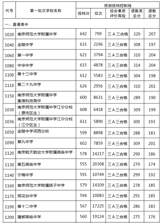 经预测,第一批次部分高中阶段学校的投档控制线如下: