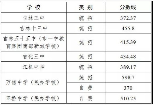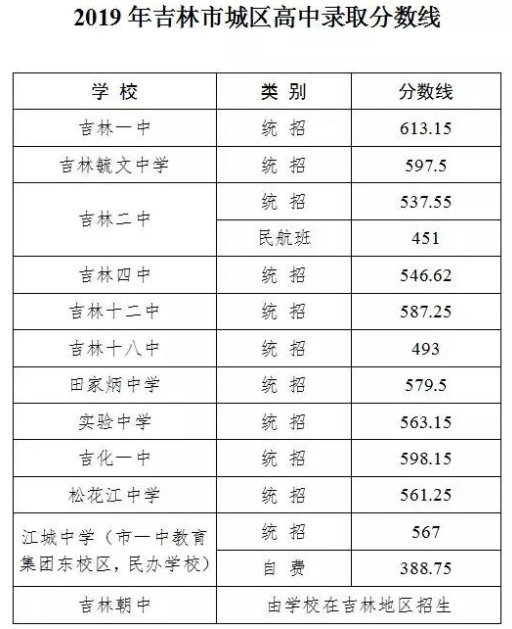 2019年吉林省吉林市中考高中录取分数线公布了,具体内容如下所示:
